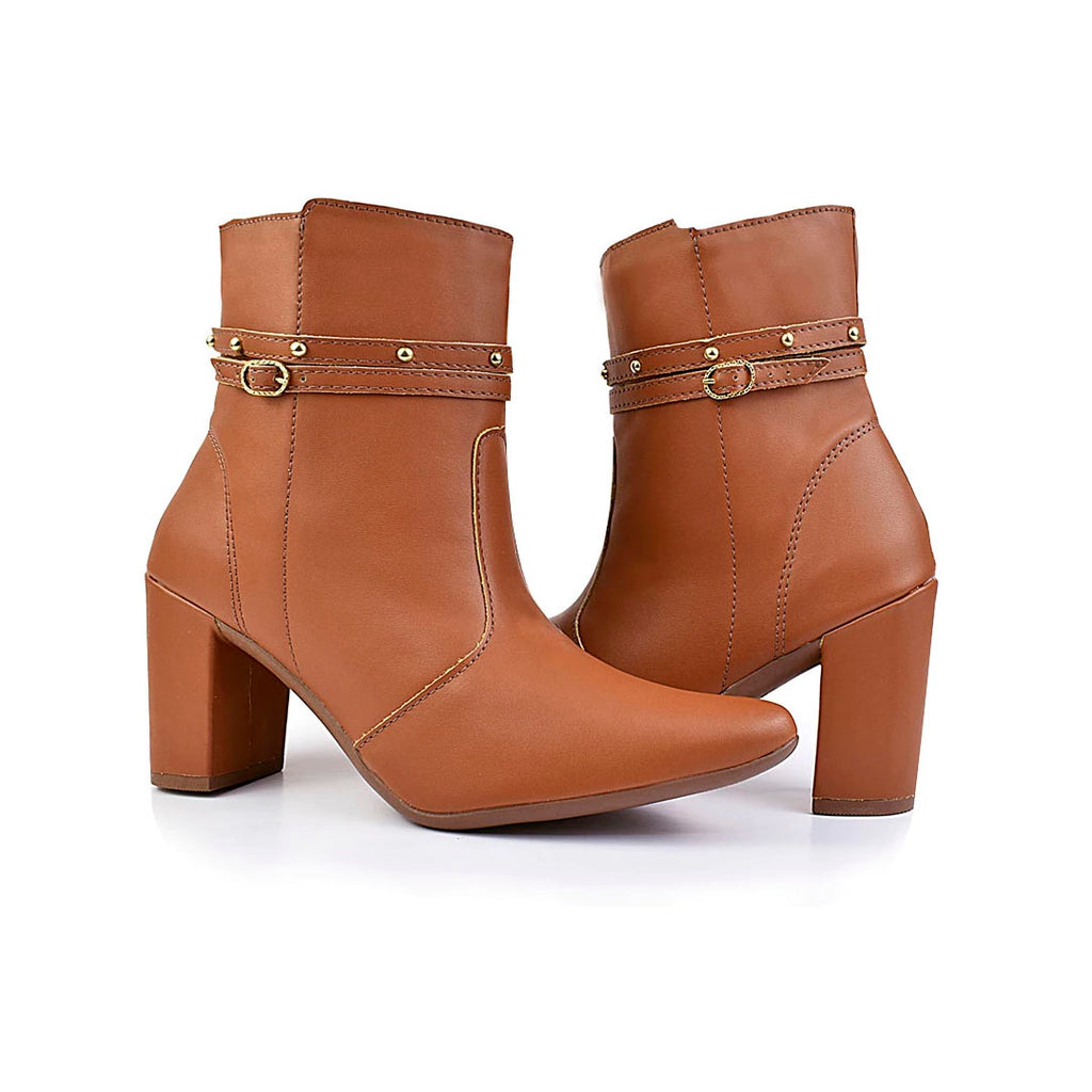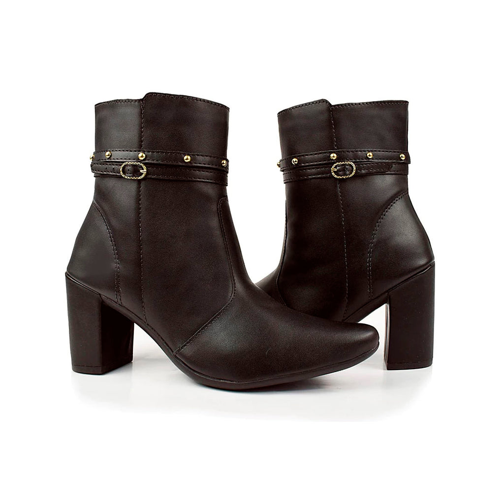 Bota Feminina Bico Fino Salto Alto Bloco Fashion Detalhe Fivela Brilho Confortável Original