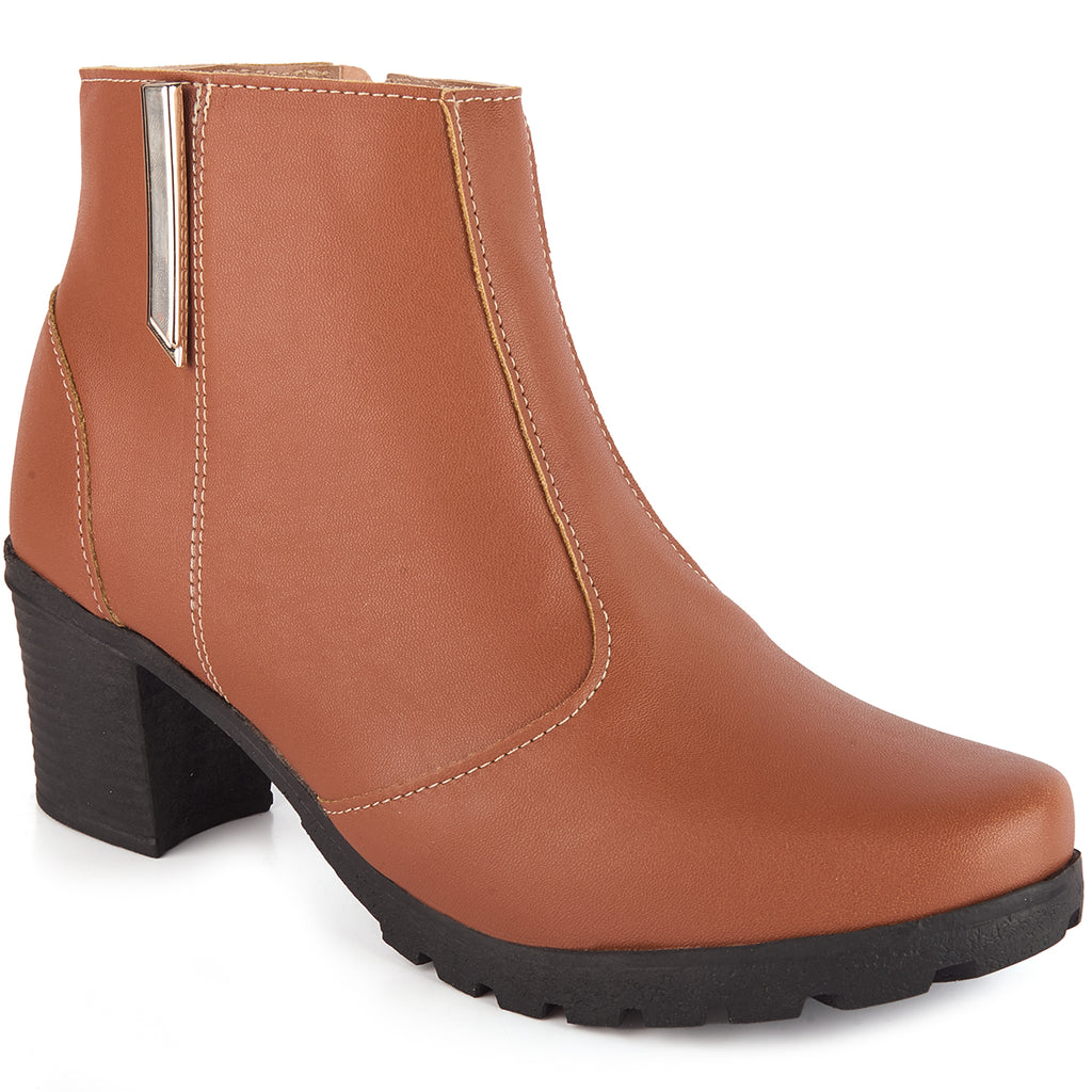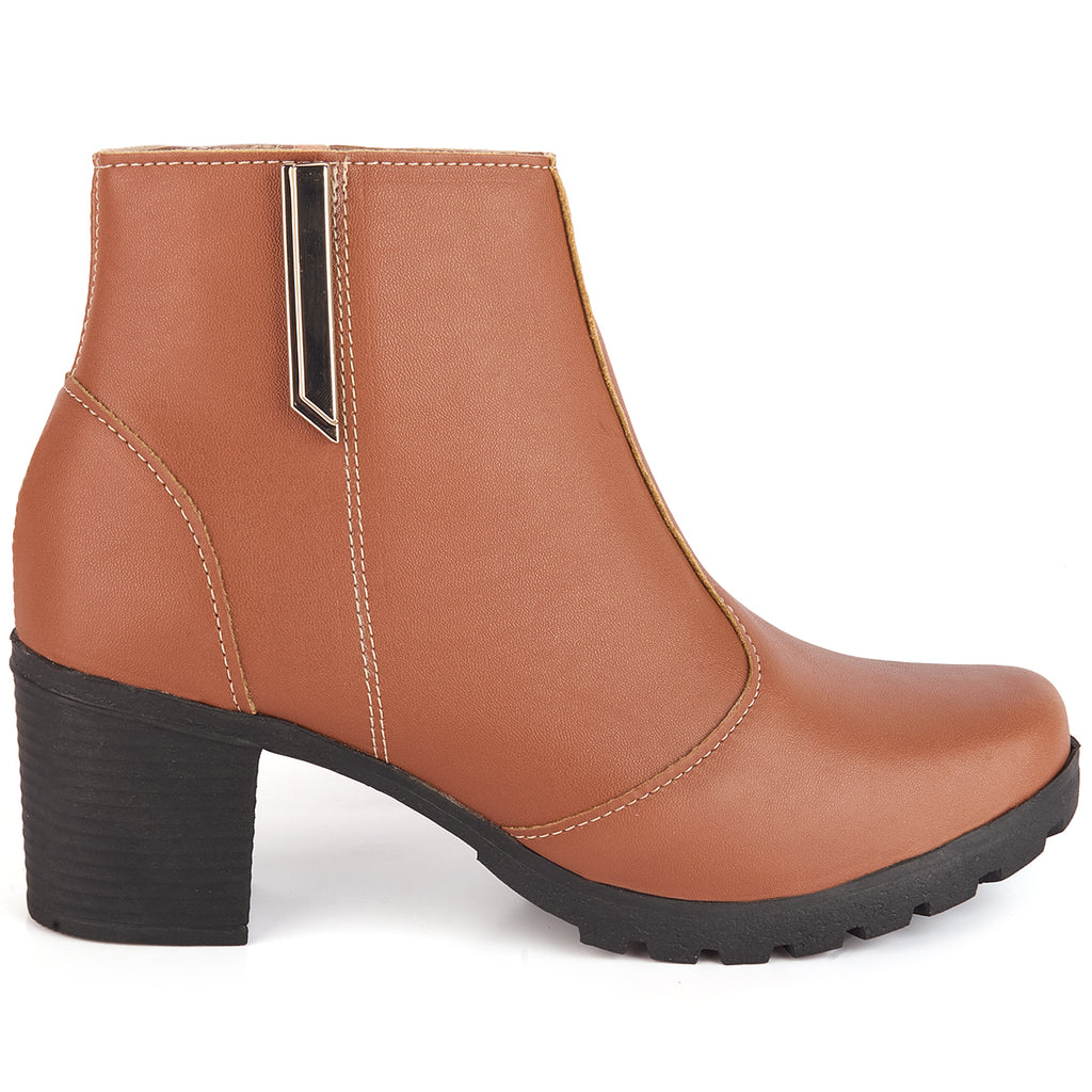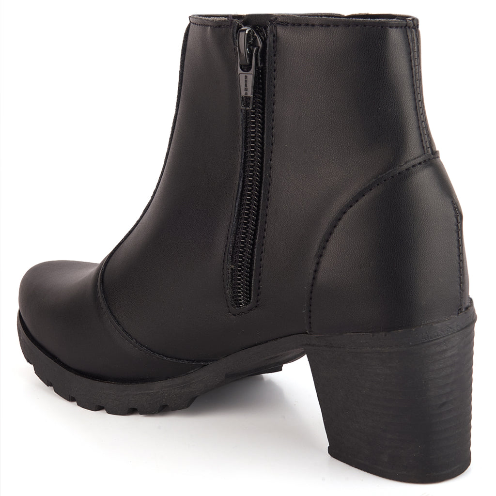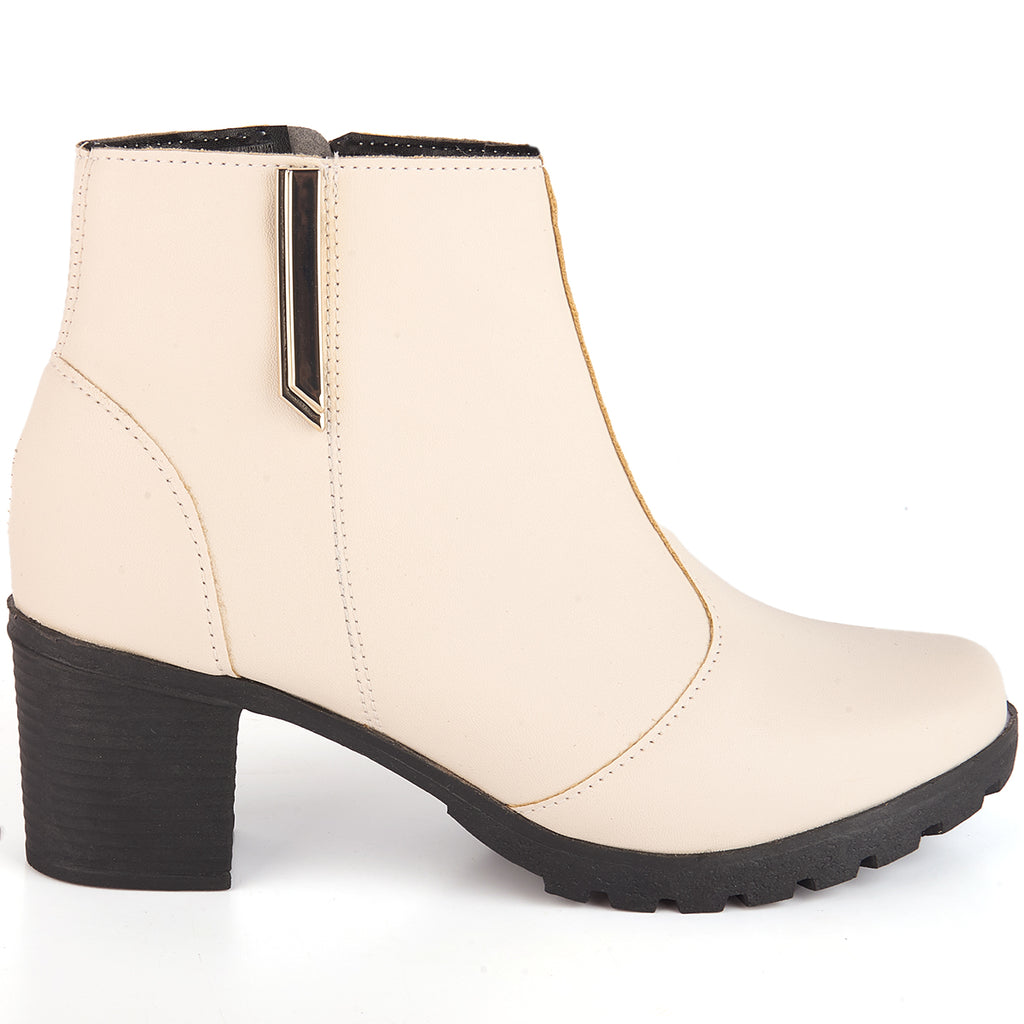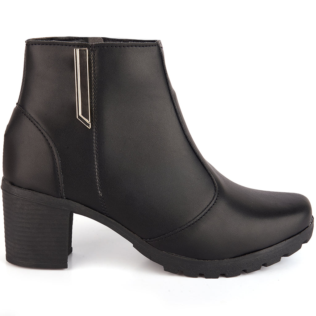Bota Feminina Olzzy Salto Médio Coturno Cano Curto Detalhe Lateral Metal Confortável Moda Atual