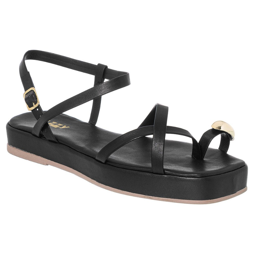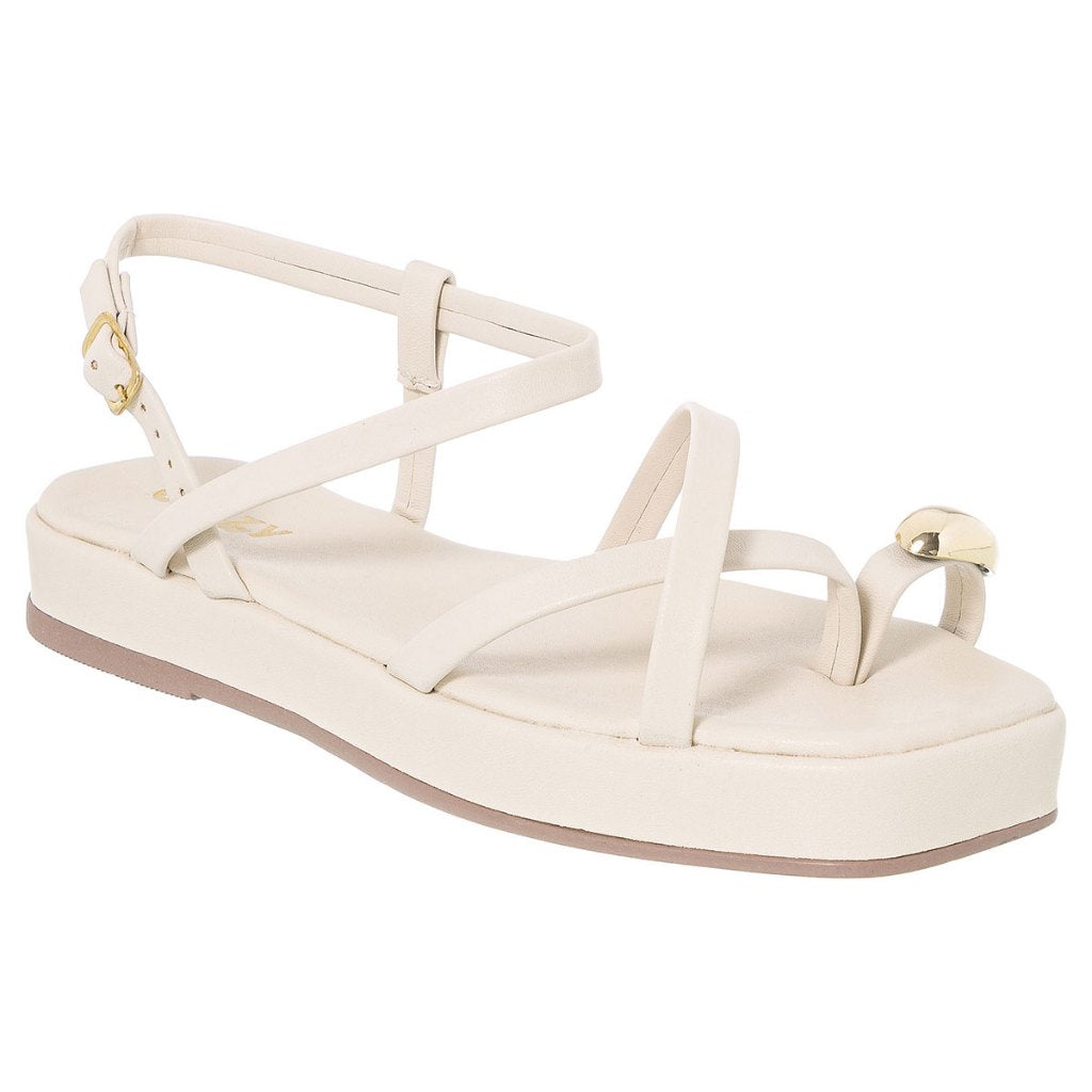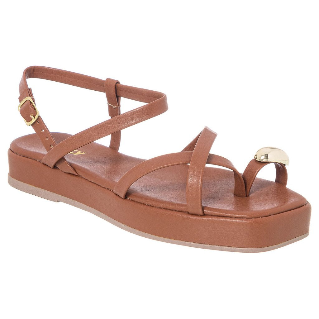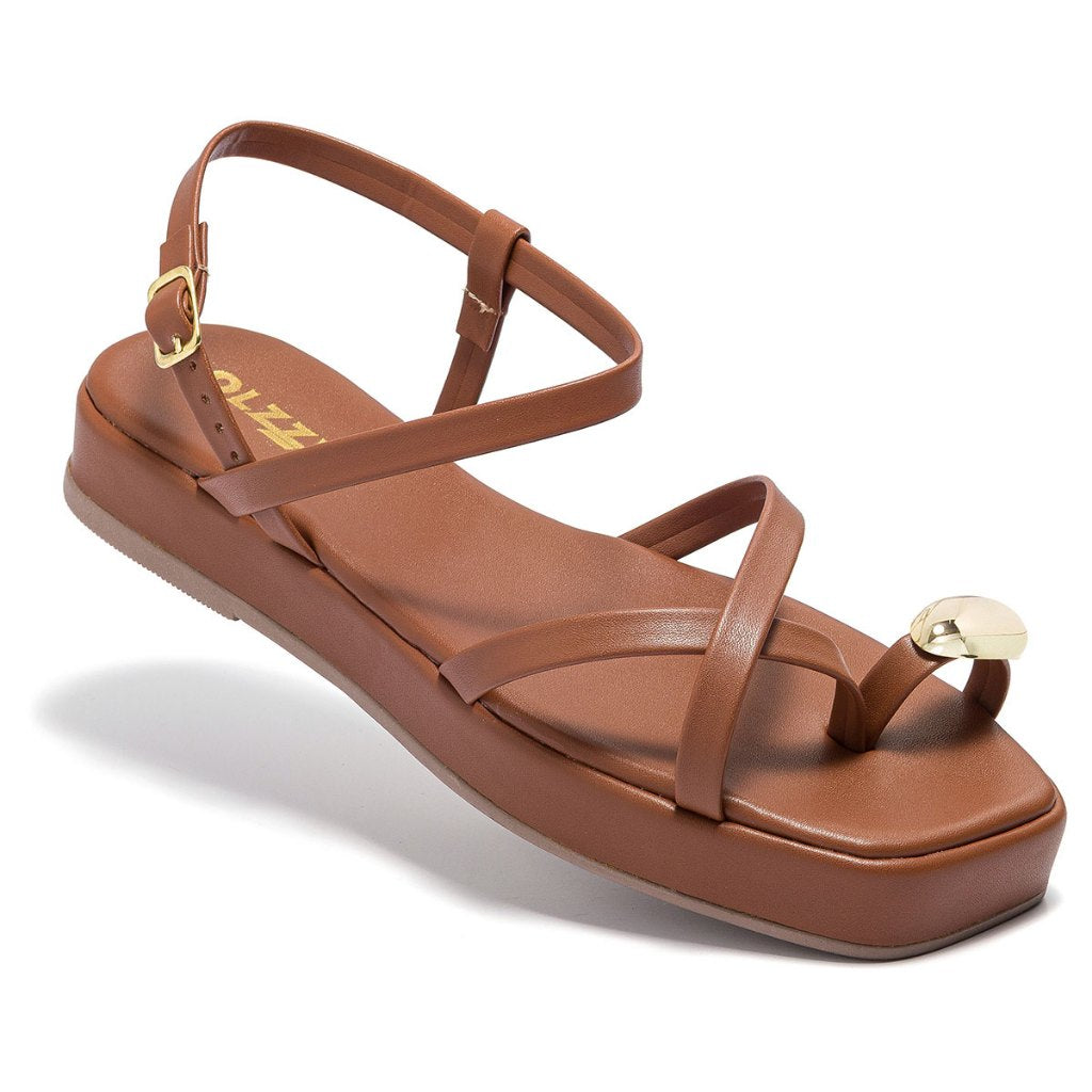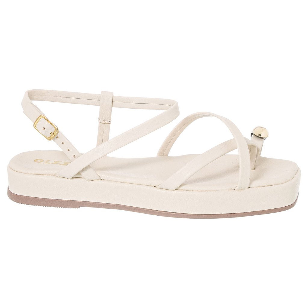 Sandália Rasteira Feminina Olzzy Design Moderno com Detalhe Metálico Dourado Confortável e Moderna