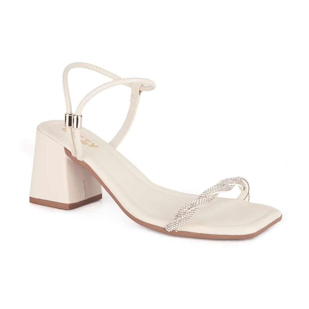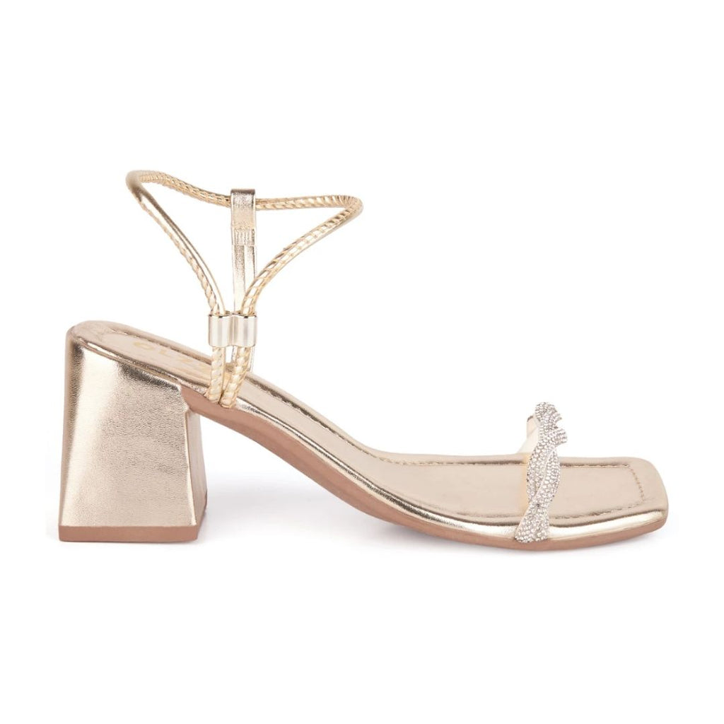 Sandália Feminina Brilho Salto Médio Festa Strass Calce Fácil Moda Luxo Confortável